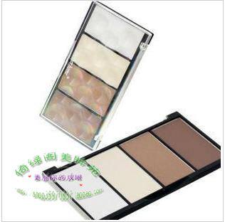 2、颜色梢深些的修容饼用来修饰双颊、鼻梁及下巴,还有颜色略浅些的,用以突显眼睑的部位。