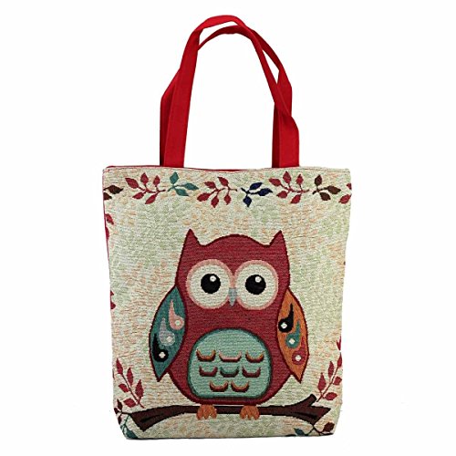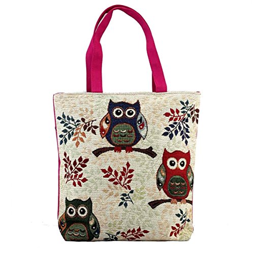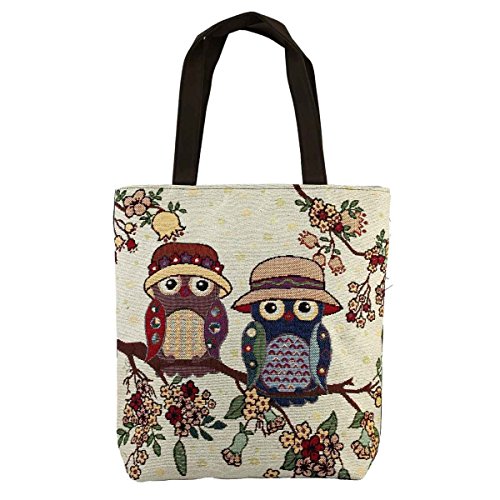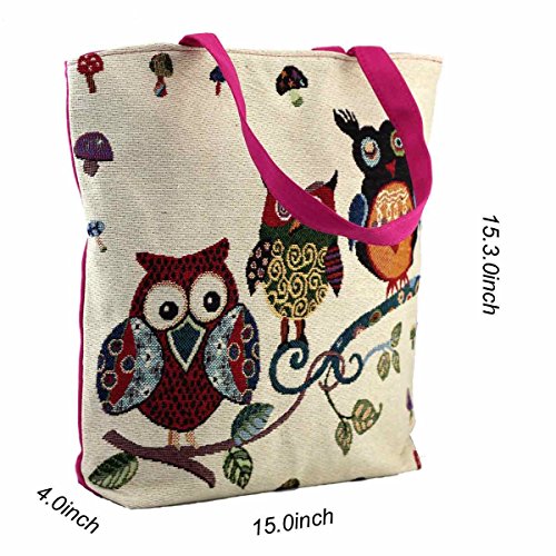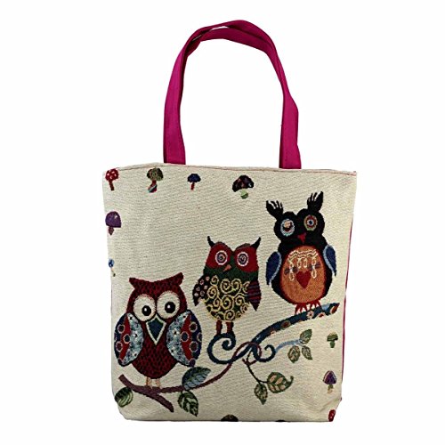 HUIB Women's Heavy-Duty Colorful Cartoon Owl Pattern Tote Bag Shoulder Bags Beach Bag, Sturdy and Roomy, Cotton and Linen (AB052-3)