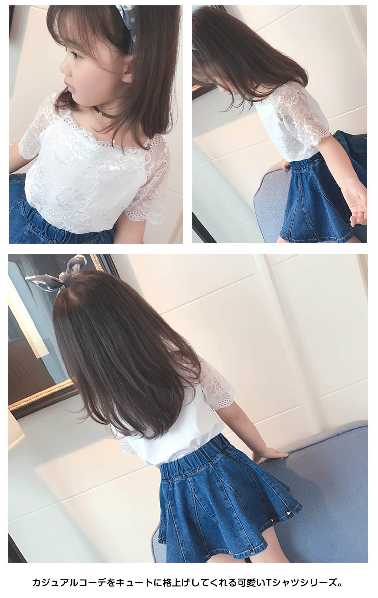 | 女の子らしいCUTEなレースの切り替えTシャツ。通園通学女の子夏のカジュアルコーデに欠かせないTシャツ! カジュアルコーデをキュートに格上げしてくれる可愛いTシャツシリーズ。 | |