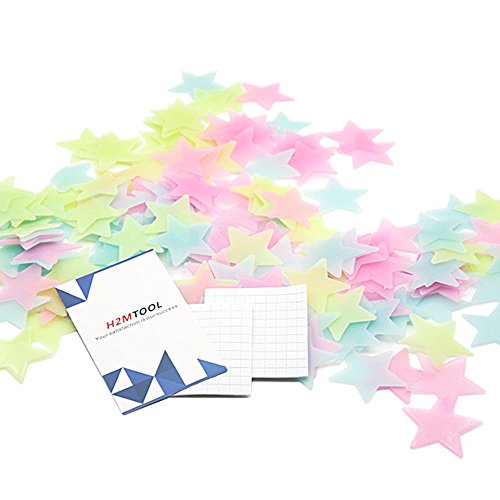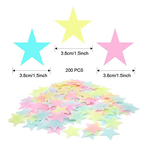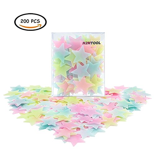 H2MTOOL 200pcs Luminous Star Wall Stickers, Glow in the Dark Star Ceiling Decals for Kids Rooms (3.8cm / 1.5inch, Multi-color)