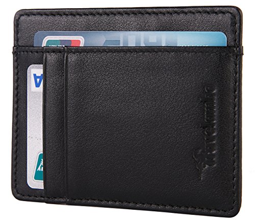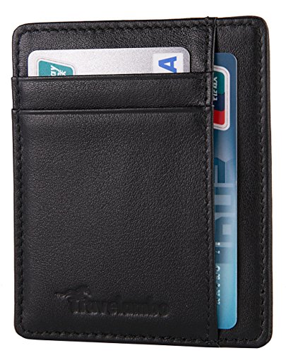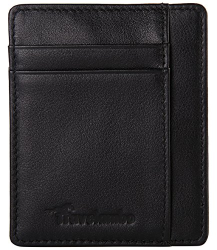 Travelambo Front Pocket Wallet Minimalist Wallets Leather Slim Wallet Money Clip RFID Blocking (black)