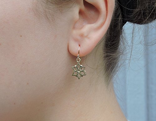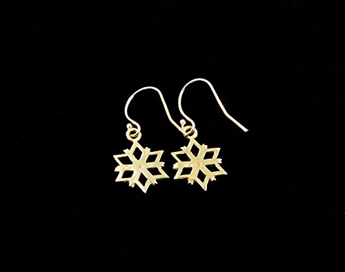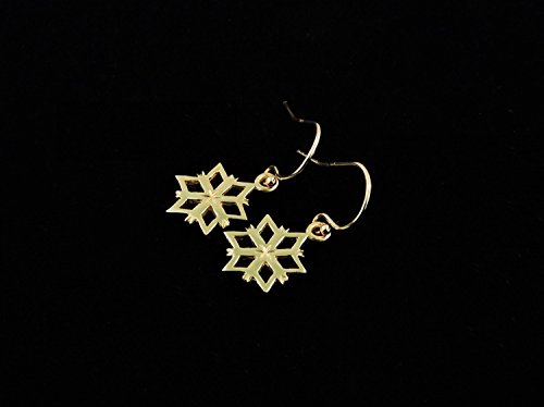 -. Title : 14k Yellow Gold Snowflake Earrings with a High Polished Finish