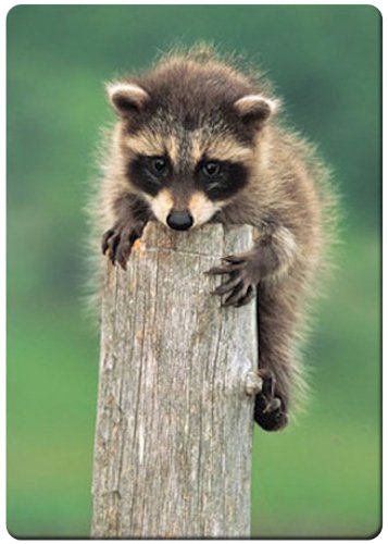 -. Title : Baby raccoon on stump fridge magnet