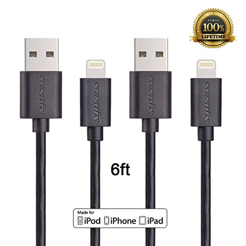 [Apple MFi Certified] Sundix (TM) 2Pack 6ft Extra long Lightning Cable Element Series 8 pin to USB Sync Cable & Charger, Made for iPhone 6/6 Plus, 6s/6s Plus, iPad&iPod Models, the Latest iOS 9(Black)