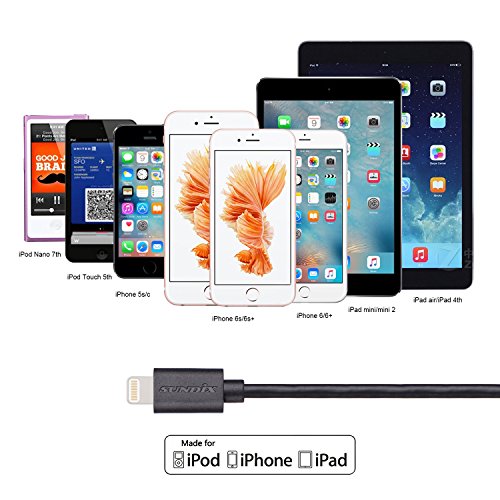 FULL COMPATIBILITY: It is MFi certified 8-pin lightning connector guarantees to charge and synchronize your Apple devices: iPhone 6s / 6s Plus / 6 / 6 Plus / 5s / 5c / 5, iPad Air / Air 2, iPad mini / mini 2 / mini 3 / mini 4, iPad (4th generation), iPod