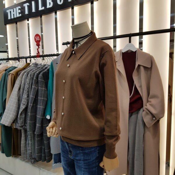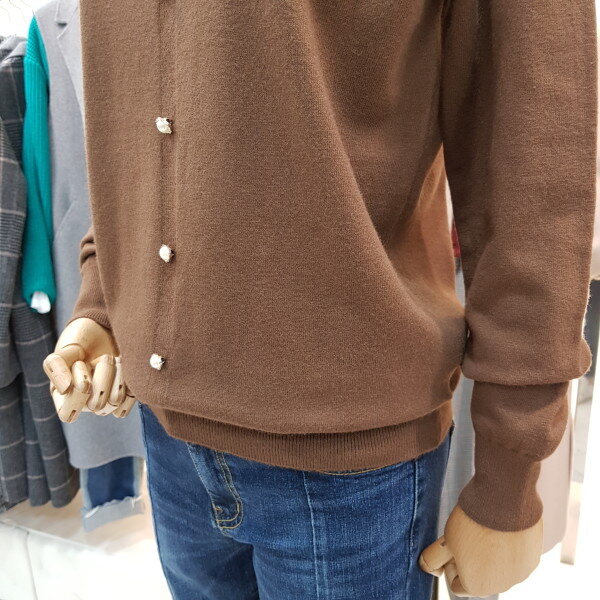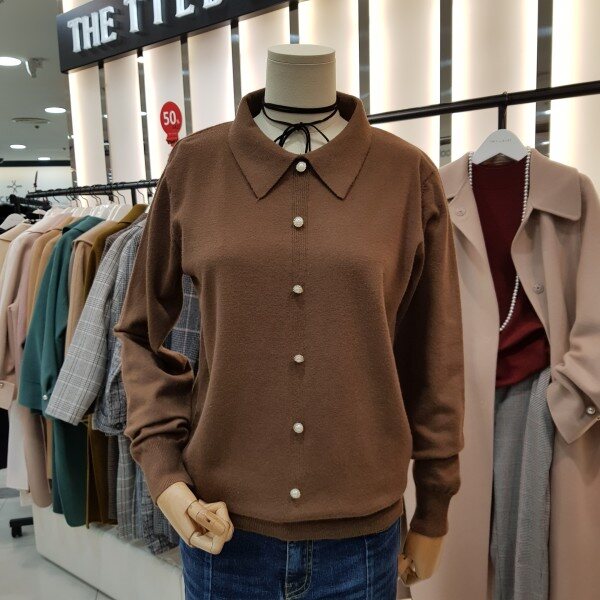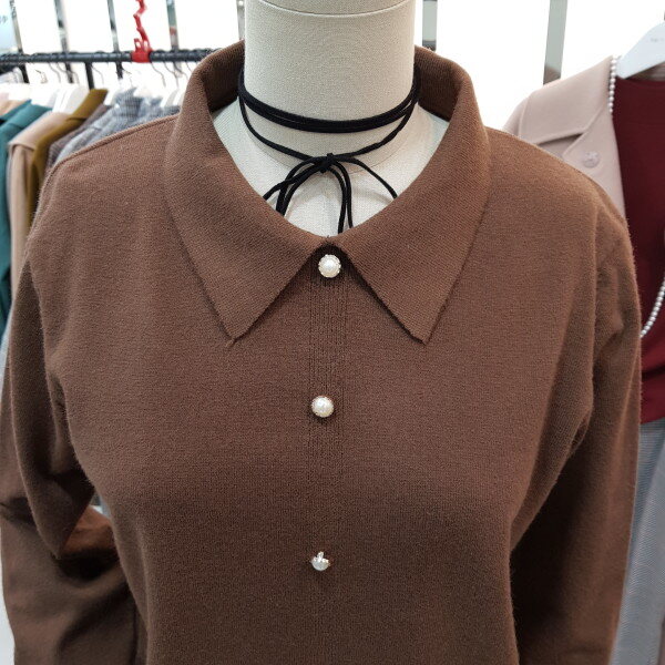 카라넥과진주단추포인트가 깔끔하면서 여성스러운 니트입니다.힙을 살짝 덮는 기장감으로 약간 루즈한핏감의 신축성 좋은 아이템입니다.