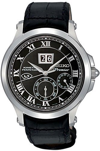 Seiko Men''s SNP041P2 Leather Synthetic Analog with Black Dial Watch
