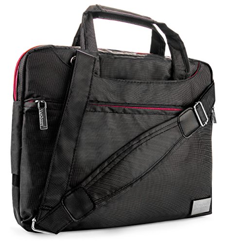 - Feature : Hideaway handles neatly tuck into case when not in use / Removable clip on shoulder strap / Multiple interior and exterior pockets perfect for holding accessories / Side pocket for charging device while it is still inside the case / Chrome VanGoddy branded clips, zipper pulls and emblem / Slim and low profile / Approximate Tablet/Laptop Compartment Dimensions: 13in x 10.25in x 2.25in / Holds laptops up to 13.3-inch in display size