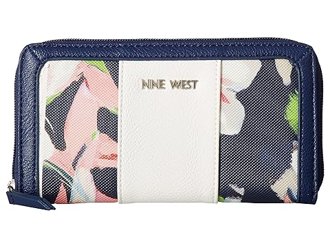 SKU: #9033391 Treat yourself to charming style with the Nine West® Aby SLG wallet. Made of synthetic leather. Zip-around closure. Exterior features brand hardware detail at the front. Lined interior features one zip pocket, an ID window, card slots, and currency slip pockets. Imported. Measurements: Bottom Width: 7 1?2 in Depth: 1 in Height: 4 1?2 in Weight: 4.8 oz |