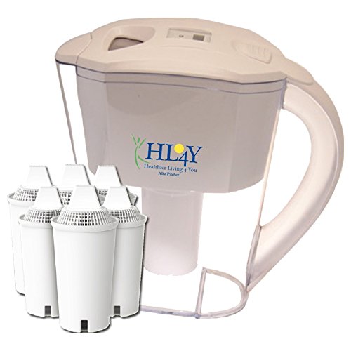 -. Brand : Alkapitcher -. Color : Clear -. EAN : 0616913790305 -. Feature : 1 Alkaline Water Pitcher Plus 6 Filters - Give yourself and your family the gift of instantly available alkaline water. / Raise the pH of your drinking water - make it Alkaline! / Filter out chlorine, sediment, pesticides and organic pollutants, improves taste and eliminates odors / Filter Timer - Lets you know when it is time to change the filter (2 months) so that you do not have to keep track or wonder. / Enjoy your new found freedom, with easy to make and drink alkaline water for the whole family -. IsAutographed : 0 -. Label : HL4Y -. Manufacturer : HL4Y -. PackageQuantity : 1 -. ProductGroup : Kitchen -. ProductTypeName : KITCHEN -. Publisher : HL4Y -. Studio : HL4Y -. Title : Alkaline Water Pitcher with 6 Filters No BPA -. UPC : 616913790305