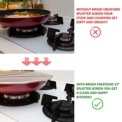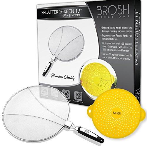 Here's How To Keep Your Kitchen Cleaner And Safer With One Move Guaranteed Are you sick and tired of trying to clean the dirtiest, most outrageous messes that somehow find their way into your home? Does it seem impossible, no matter how many splatter guards you've tried, to keep oil from splattering all over, when cooking with a frying pan on a portable stove or hot plate? Does this sneaky grease always manage to make it through so that it messes up your whole work space? Do you feel deceived by all those fake promises for a kitchen shielded from fat and oil splash? Looking for a way to stop being one of those cooks who constantly ends up with painful cooking oil burns? I can see you nodding! The stainless steel mesh of THIS splatter screen is so tightly woven that, although it vents moisture from the pan, it contains hot oil and other contents. It's a 13" guard that accommodates all-size pots and pans and keeps oil in place-not on your skin. The hazardous boiling oil no longer needs to be part of your cooking experience! This Professional Quality Splatter Screen Will Never Fail You Forget splatter screens that, quickly, get rusted and unstable handles that fall apart after the first use. Our innovatively designed, with sleekness and sophistication, kitchen tool is extra-durable, sturdy and meant for professional use. We're proud to provide you with a complete splatter-free cooking experience, by offering an additional 9" silicone splatter guard at the most affordable price ever: ZERO. This 3-in-1 silicone screen can magically turn into a trivet or a strainer. While we're sure you'll love what you'll order, if you're not 100% happy, we'll gladly refund or exchange it. That's our BROSH CREATIONS promise! Don't Delay Acting On A Good Idea! Click "Add to Cart" NOW. 0 |