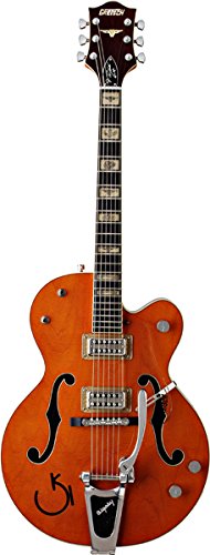 G6120RHH Reverend Horton heat 짐《레바렌도호톤히토》의 SIG 네이쳐 모델입니다.1955년 스타일의디자인와 1958년 스타일의 픽업과 콘트롤을 편성했 개성적인 모델입니다.주요 사양은,TV존스 클래식 픽업,핀 도어 저스트《마팃쿠부릿지》,고트제 록 튜너,클리어 픽 가이드,래커 피니쉬 등을 특징에 하고 있습니다. 주요 사양Body Arched Laminated Maple Top,Laminated Maple Side& Back,16” Wide,2.75” DeepNeck MapleScale 24.6” (625mm)Fretboard Ebony,12” R (305mm)Bridge Pinned Rosewood ?Based Adjusto-Matic BridgeTailpiece Bigsby B6CBDEPickups TV Jones Classic PickupControls 2 Volume,Master Volume,3-Position Toggle Pickup Selector Switch,3-Position Toggle Master Tone SwitchColor Orange (Lacquer)■부속품:하드 케이스,메이커 보증■보증:1년