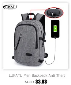 LUKATU Men Anti Theft USB Charging Backpack is a versatile backpack designed for carrying, as well as protecting article in the backpack from external influences.Universal design in the style of "unisex"andshockproof propertieswillprotect your laptop from accidental falls or other unforeseen situations.Built-in USB-port allows you to recharge anytimeand anywhere.