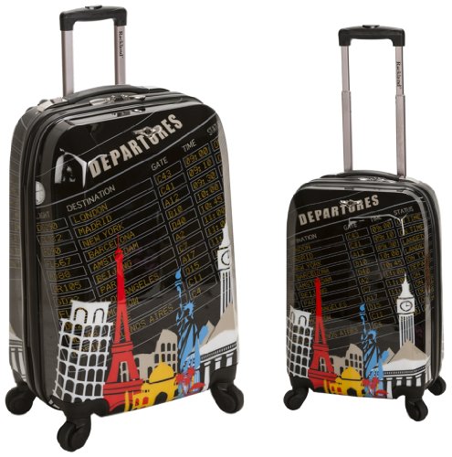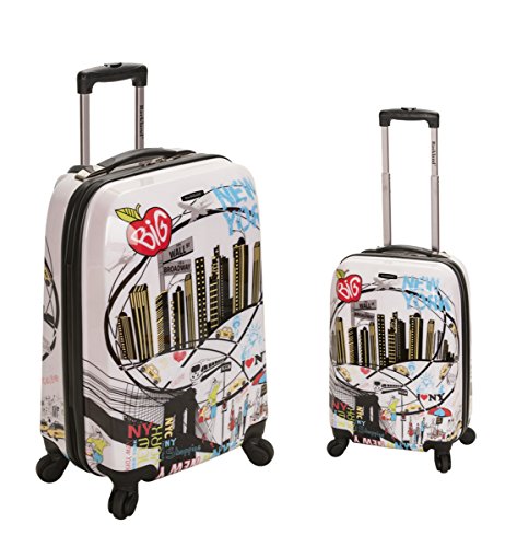 Studio : Rockland Publisher : Rockland Binding : Misc. Product Description This 2 piece set is made of polycarbonate,abs. Polycarbonate is the same material used to manufacturer bullet proof glass. The major benefits of this material - it is extremely lightweight, it is durable, and protects the contents of your luggage. Eight multi directional spinner wheels rotate 360 degrees for easy maneuverability. This luggage allows you to pack more while avoiding the excess weight surcharges imposed by most airlines. Features: multi-directional spinner wheels for easy maneuverability, modern internal chrome telescoping handle with push button handle, interior mesh and zip pocket and elastic pocket and 3 year warranty. Measures 20 inches long x 13 inches wide x 9 inches deep and weighs 6 pounds. 28 inches long x 17 wide x 12 inches deep and weighs 10 pounds. 0