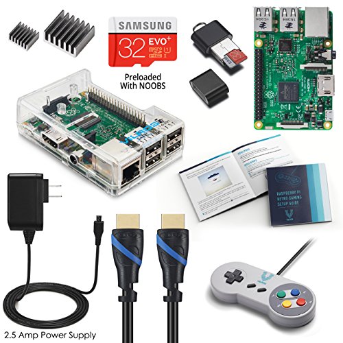 HIGHEST QUALITY ACCESSORIES-- Raspberry Pi 3 Model B-the latest and fastest Raspberry Pi motherboard--1 Classic USB Gamepads-- 2.5A USB Power Supply with Micro USB Cable and Noise Filter - designed for the Raspberry Pi 3 (UL Listed)--Clear Case with ease of access to all Ports --1080p HDMI Cable --Micro SD Card Adapter --Heatsinks to help cool the Raspberry Pi