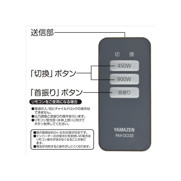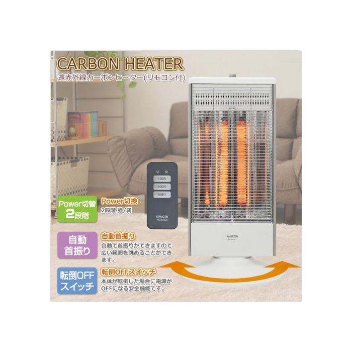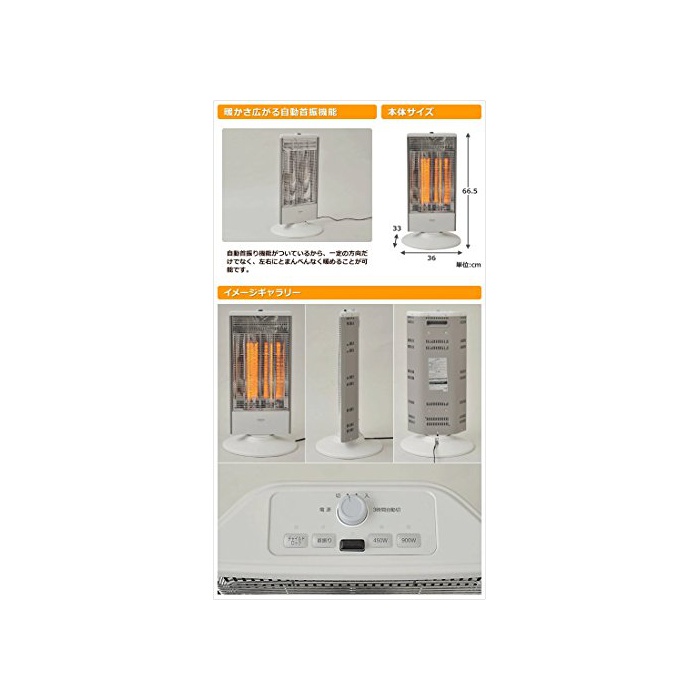 원본상품명: 山善(YAMAZEN) 遠赤外線カボンヒタ(900W/450W 2段階切替)(リモコン付) 自動首振り機能付 ナチュラルホワイト DC-RK094(W)