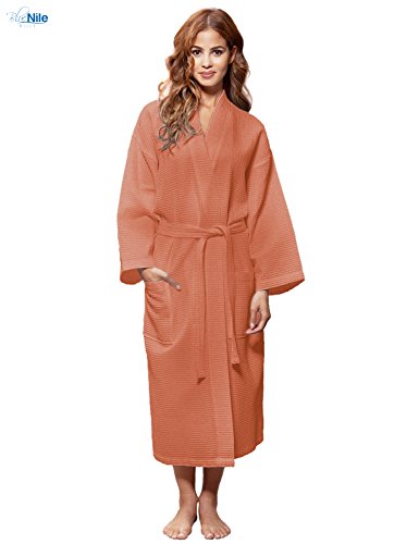 Blue Nile Mills graciously brings you one warm, soft, and relaxing high quality long-staple cotton bath robe. These terry robes are available for both men and women in appealing solid color selections. Sizes come in large, medium, small, and extra large. Rest in comfortable fabric fashioned with a belt, two pockets and sleeves made easy to fold back for style and convenience.