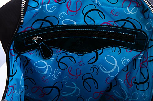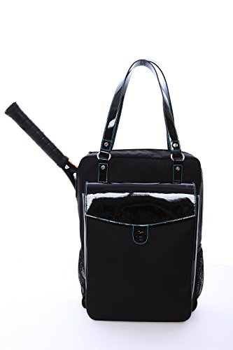 Studio : Cortiglia Publisher : Cortiglia Binding : Misc. Product Description The Brisbane is our newest bag and our rendition of a backpack. This stylish Cross over bag will allow you to carry it with your arm or cross over your body with a wide strap that guarantees not to "dig in". It has an ample outside pocket guaranteed to carry most items as well as two interior small pockets for cell phone. One secure zipper interior pocket to tuck away your most valued items. The bottom of the interior has a divider to keep your rackets tucked against one another but nothing else.... That's right we said racquets because 2 fits in quite nicely inside this bag. Enjoy! Dimensions: H18" x W14 x D5" Large main pocket that can hold up to 2 racquets Internal organizational pockets within Accessory pocket on the front with magnet closure Adjustable cross over strap so bag can be worn as a bag across your chest Made from beautiful leather and sporty nylon With solid metal feet, your bag will be protected on or off the court. Black patent accents. 0