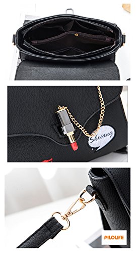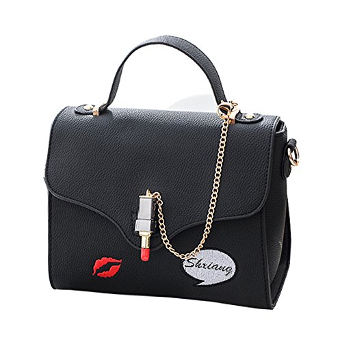 -. Title : 【PILOLIFE】ワッペンデザインハンドバッグ / 黒 レディース ショルダーバッグ ミニショルダー 2WAY 斜め掛け チェーン ポップ 吹き出し リップ