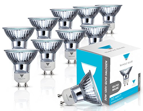 Triangle Bulbs T10293-10 (10 pack) - Q50MR16/FL/GU10, 50 Watt, MR16 With UV Glass Cover, 120 Volt, GU10 Base, Halogen Flood Light Bulb, 10 Pack