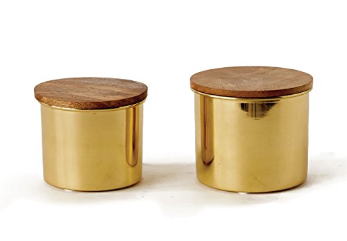 Creative Co-Op DA6536 Gold Metal Canisters Set with Mango Wood Lids