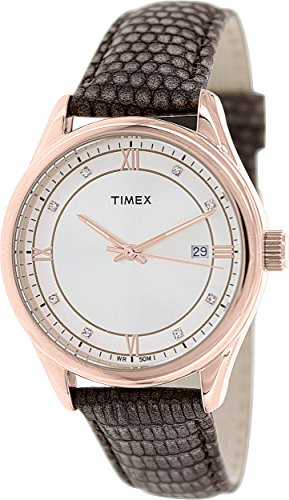 Timex Women's Classic T2P558 Brown Leather Quartz Watch with Silver Dial