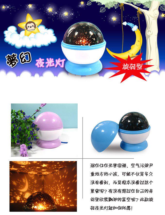 Description: Star Projector series upgrade version, you can rotate, can illuminate the stars, the moon, very cute.?