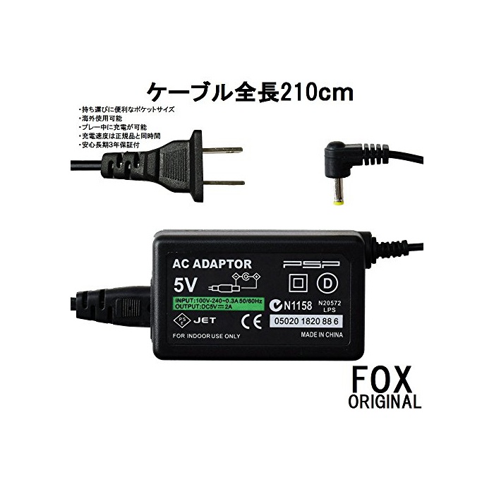 원본상품명: FOX 安心長期3年保付き PSP1000/PSP2000/PSP3000 ポケットサイズ ACアダプタ PSP 充電器