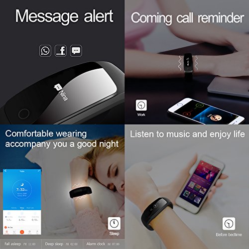 ✔ Multifunctional Sports Smart Band- Automatically heart rate monitoring,sleep monitor, pedometer, calories burnt counter, distance counter, weather display, time clock, camera remote control, music Control, message alert, sedentary reminder and anti-lost etc