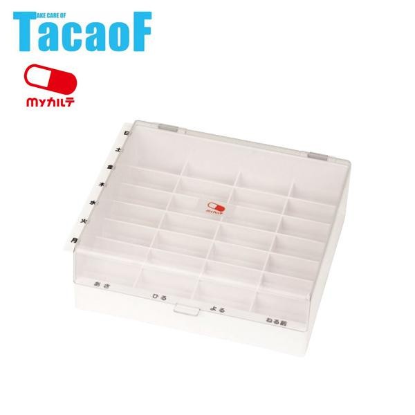 1日4回×1週間のお薬を整理できます。 製造国:中国 素材・材質:本体・フタ:ABS樹脂 商品サイズ:幅250×奥行228.5×高さ82mm 重量:545g 仕様:すべり止め付 付属品:時間・曜日シール ※サプライヤー直送品 ご注文後2~3営業日後の出荷となります【商品名】幸和製作所 テイコブ(TacaoF) Myカルテ くすり整理キープケース HEC03