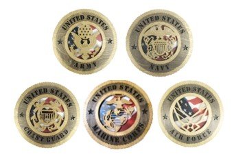 5 Branch Laser Cut Military Wall Plaques with American Flag