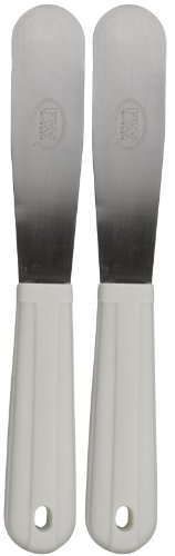 Product DescriptionThe curved blade is fabulous for holding back foam as well as spreading cream cheese, butter, etc. Stainless steel blade, white plastic handle.0