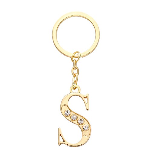 NOUMANDA Alloy 26 Alphabet English Letters Crystal Initial Charms Real Gold Plating Key Chain Ring (Letter S)