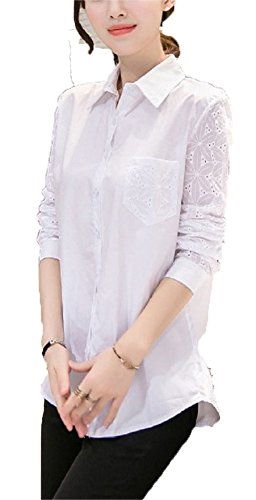 -. Title : (レアノリ)Leonori レディース フェミニン 刺繍 七分袖 肩 レース ブラウス カットソー ロング 丈 シャツ