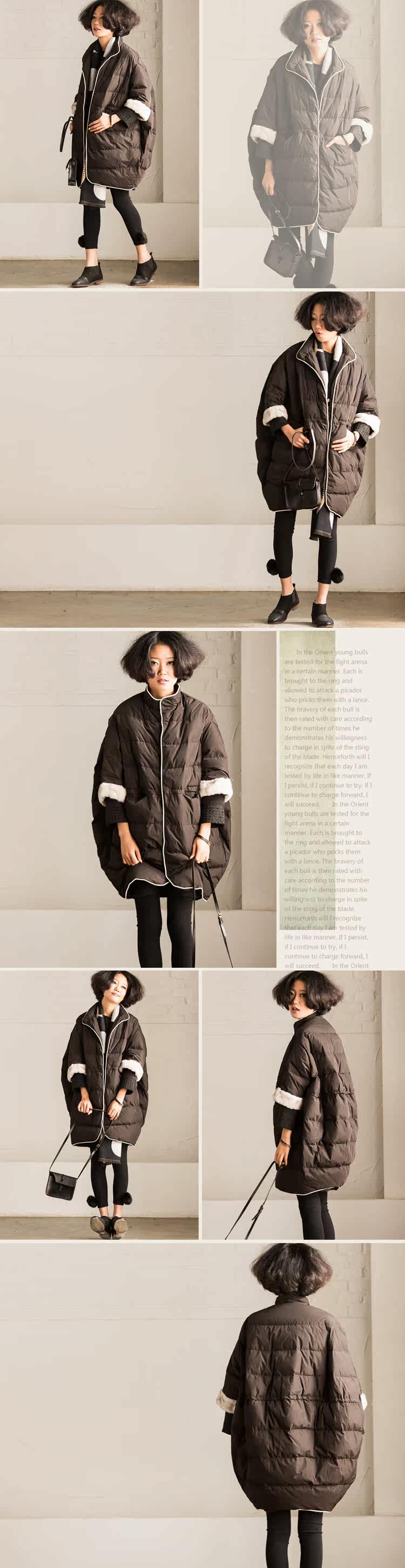 面料:涤纶 里衬:涤纶 填充物:白鸭绒+毛片,手感舒适,无弹力,单件重850g,厚度偏厚,适宜冬季穿~ |