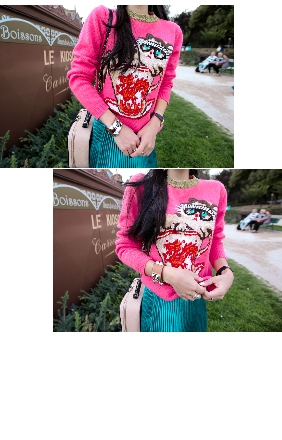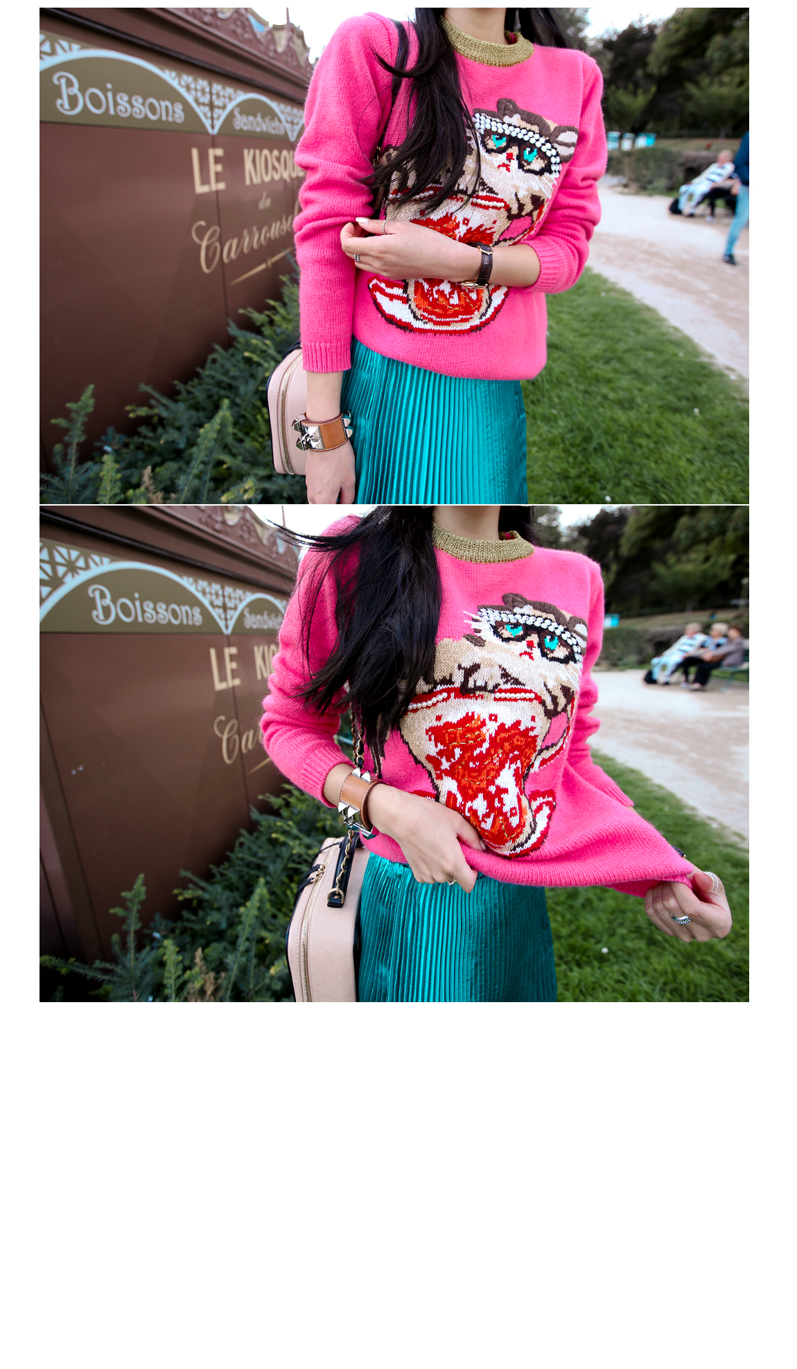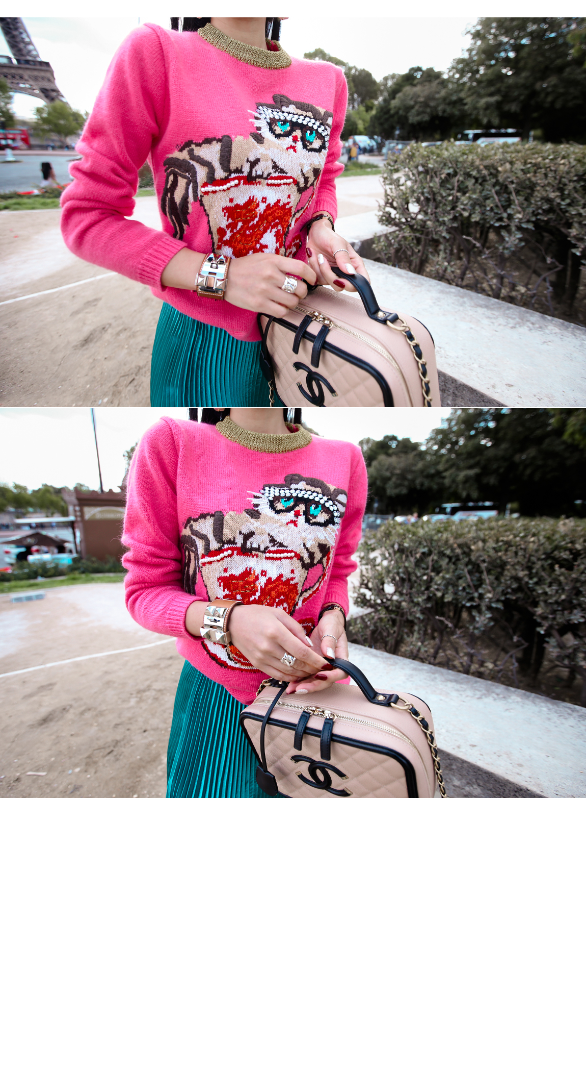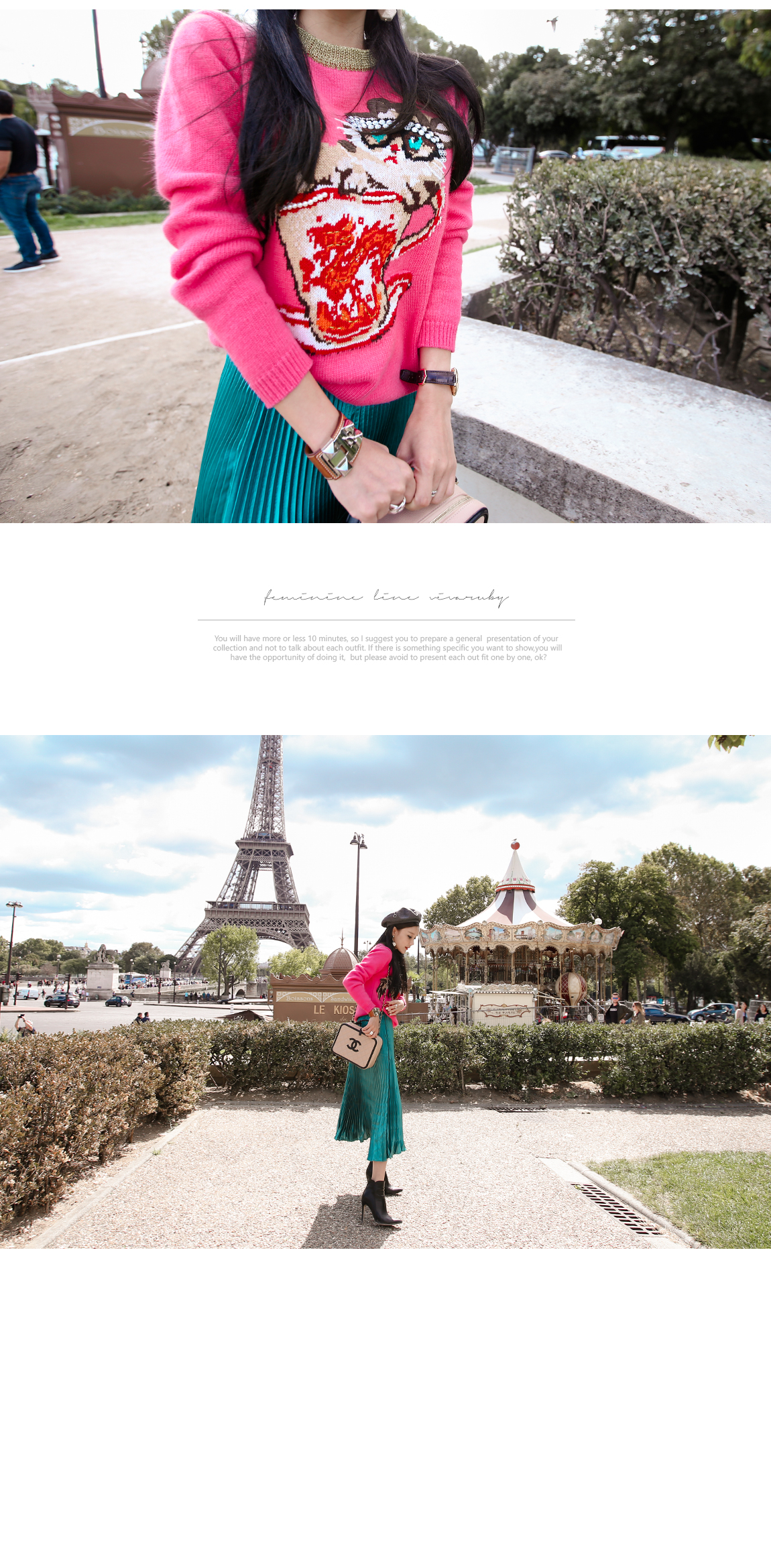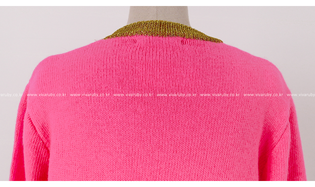 ラウンドネックラインはゴールドカラーで配色感を与え、