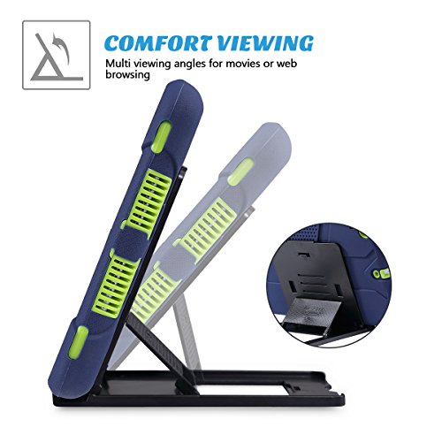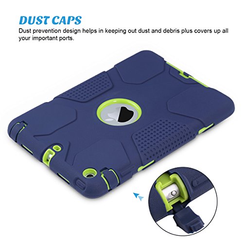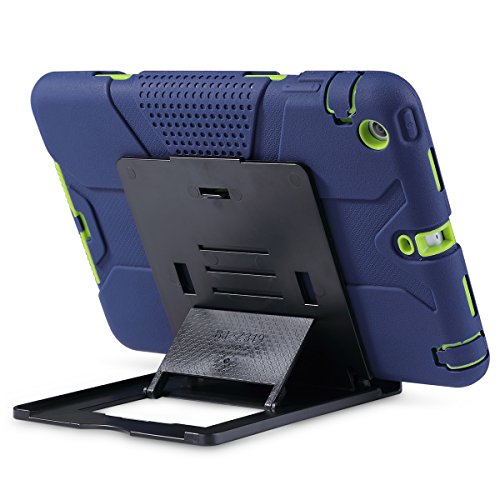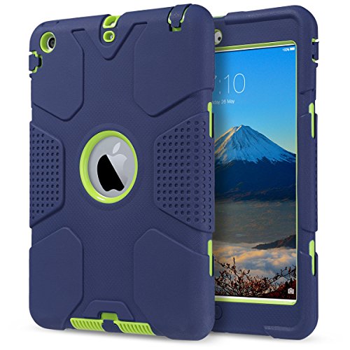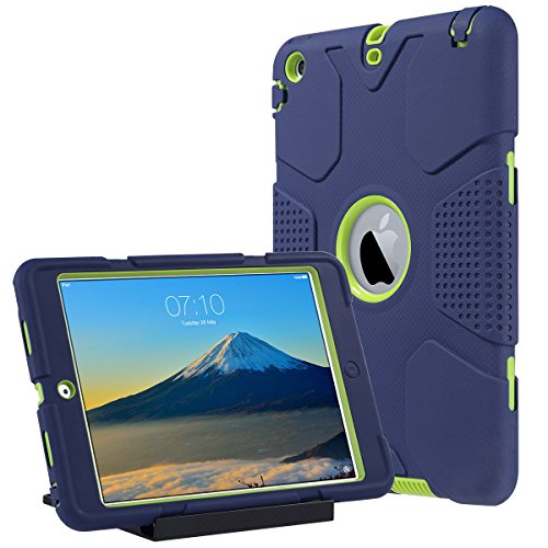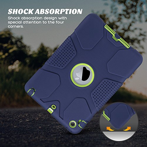iPad Mini 2 Case, iPad Mini 3 Cover, ULAK Shockproof Smart Fit Bumper Hard Cases Three Layer Knox Armor Protective Cover for Apple iPad Mini 1 2 3 Tablet with Separate Kickstand Navy Blue+ Lime Green