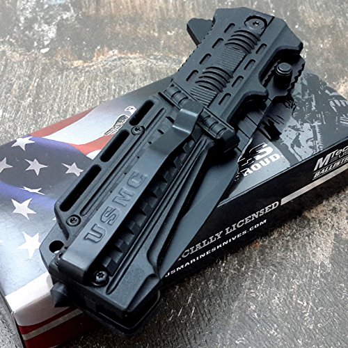 -. Title : U.S. MARINES Knife Licensed USMC MARINES Assisted Military Knives BLACK Tactical Tanto Knife