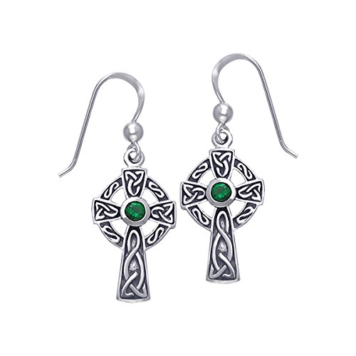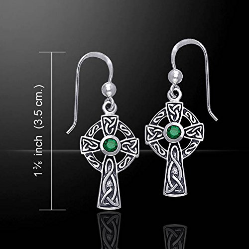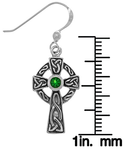 -. Title : Jewelry Trends Sterling Silver Celtic Cross Dangle Earrings with Dark Green Glass
