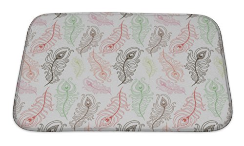 Gear New Doodle Peacock Feathers Pattern Bath Rug Mat No Slip Microfiber Memory Foam