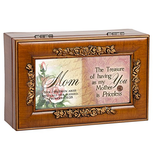 Cottage Garden Mom Woodgrain Petite Rose Music Box / Jewelry Box Plays Amazing Grace