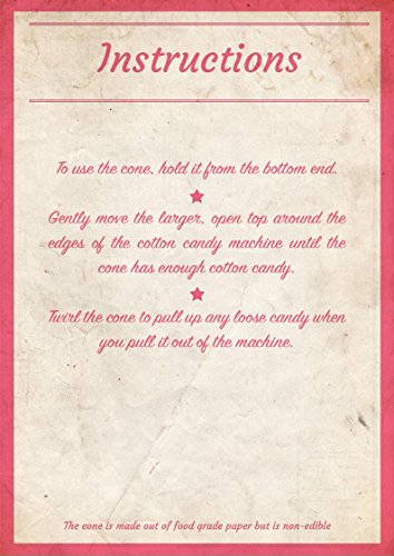 - DESIGNED AND PHOTOGENIC: Give an extra fun factor to pictures taken with cotton candy. No more plain blank white cones. Even the instructions are designed to be nice on picture.