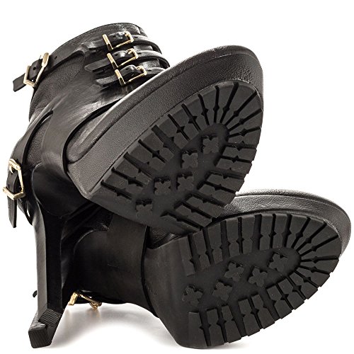 Buckle up with this fierce BCBGeneration Women's Welsh Combat Ankle Bootie with buckle accents. These booties feature: detailed black pebbled leather upper, and smooth strap design with wrap around gold buckles. Whether you have a sportier look, maybe hipster, or even preppy, they know what women want - and it's BCBGeneration.Feature