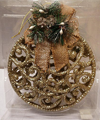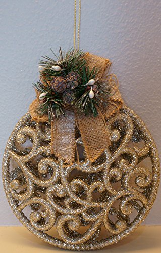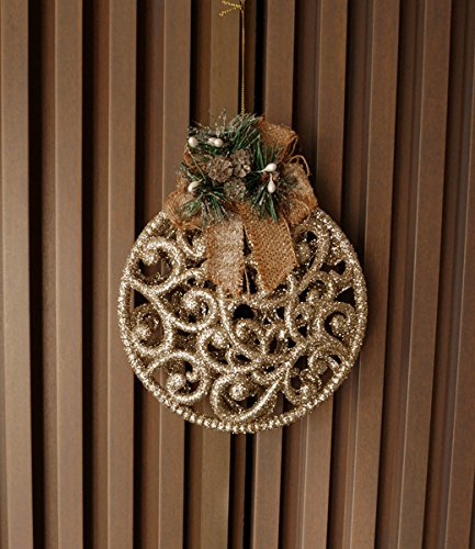 Christmas Traditions 8 inch Gold Glittered Wall/ Door Ornaments with Burlap Bow hanging Decorations