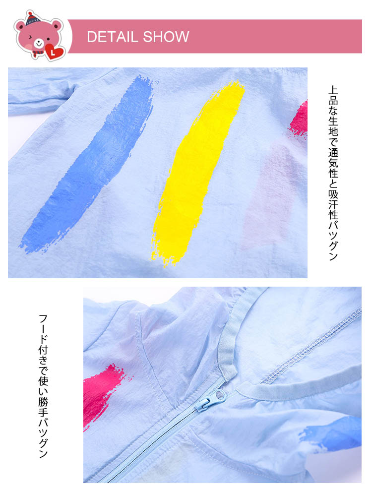 | お洒落な落書きフード付きパーカー柔らかい肌触りがお子様にも安心◎こだわりのディテール袖、裾、フードまでパイピングあしらい、丁寧に仕上げたアイテムです昼間の日焼防止対策だけではなく、夕方や冷房での冷え防止にもピッタリ薄手生地でさらっとした着心地だから快適!ジップアップタイプで小さい子供も簡単に履き脱ぎできるからママも安心 | |