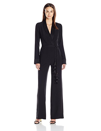 Long sleeve tuxedo jumpsuit with tassel belt and satin lapels