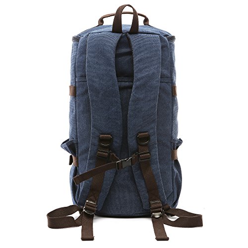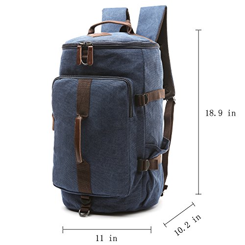 -. Feature : Multi-function Backpack,Main material:High density cotton canvas ,it's a very durable backpack. / Construction : one main zip pocket, one front zip pocket, two side pockets, one removable shoulder strap / Dimensions : about 11" L x 18.9" H x 10.2 W " / 28 x 47 x 26 cm ; With a capacity of about 35 L , suitable for most 15-inch laptops. / Multi- purpose : it can be used as backpack/ shoulder bag/ handbag / travel bag. The straps can be hidden , removable shoulder strap, easy conversion. A bag provides three different ways at least to carry it. / Any question of our backpack, just feel free to contact with us through Amazon. So that the problems can be solved with quickly.
