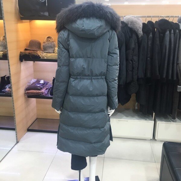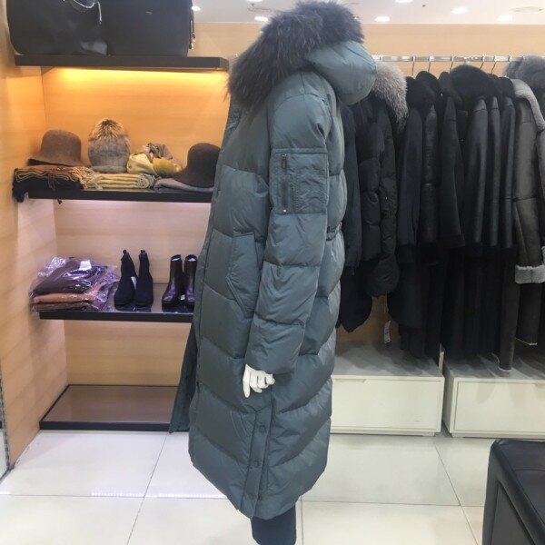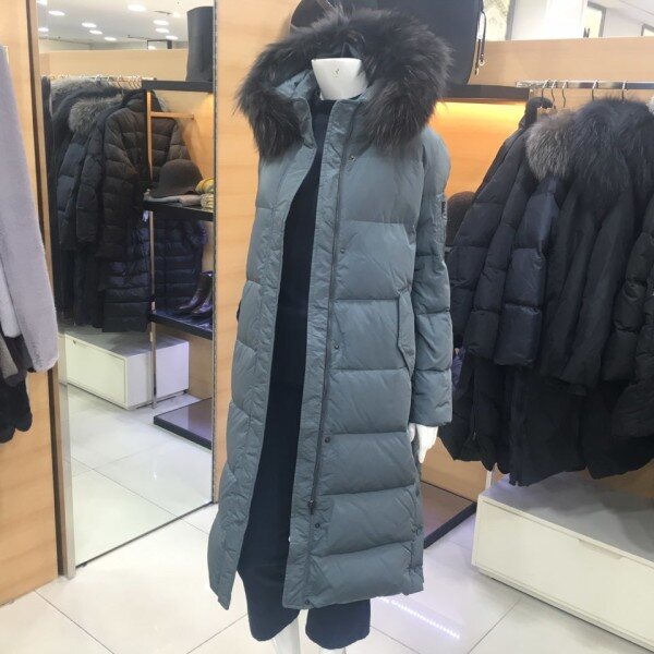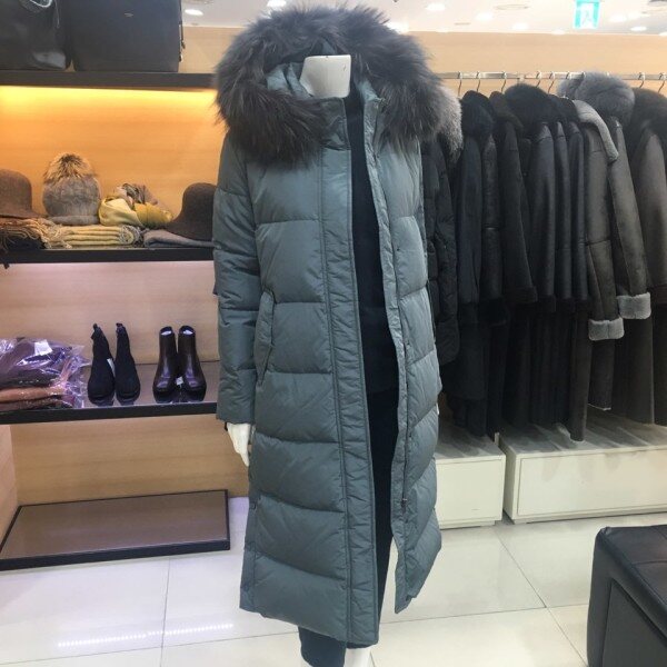 쉬즈미스 라쿤퍼가 트리밍된 오리솜털 충전재가 도톰하게 들어간 롱패딩점퍼예요 허리스트링으로 라인을 조절하여 다양한 스타일링이 가능한 디자인입니다