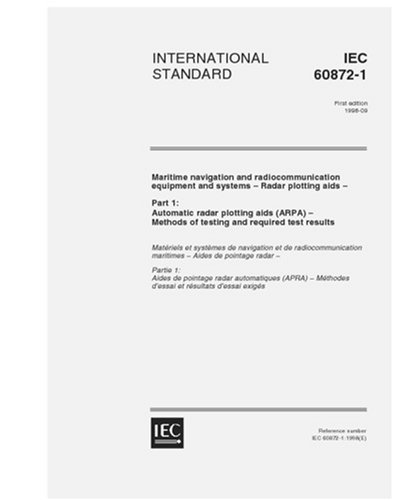 IEC 60872-1 Ed. 1.0 en:1998, Maritime navigation and radiocommunication equipment and systems - Radar plotting aids - Part 1: Automatic radar plotting ... Methods of testing and required test results