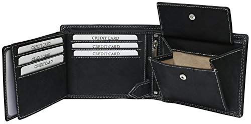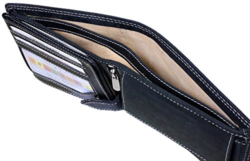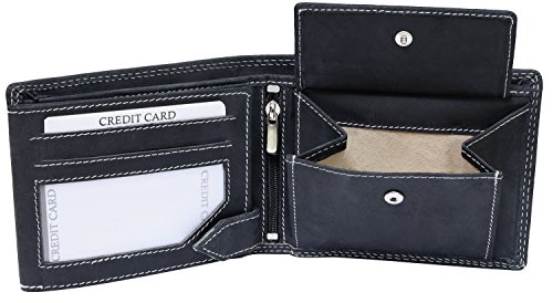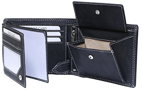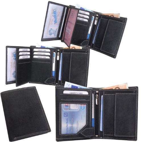 -. Feature : Stabiele Doppelnaht im Außenbereich / Ledergeldbörse Geldbörse Börse Geldbeutel Portmonnaie Purse / tief-schwarzes Vollleder Rindleder / Echtleder auch im Münfach und den Scheinfächern / vernähte Kreditkartenfächer